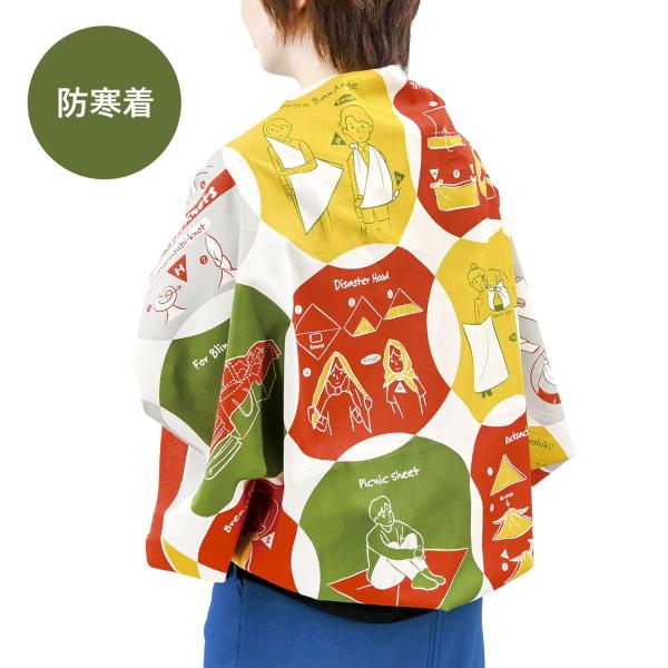 軽くて畳むとコンパクトに持ち運べるふろしきは、三角巾や頭巾、防寒着など多様に変化し、災害時の“困った時”を手助けしてくれます。