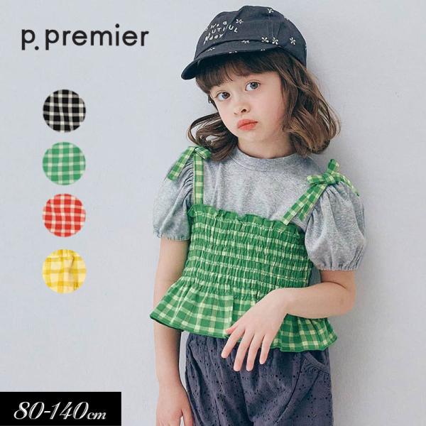 子供服 p.premier ピードットプルミエ 先染めチェックのシャーリングビスチェ&トップス セット キッズ 半袖Tシャツ シンプル かわいい 2026夏