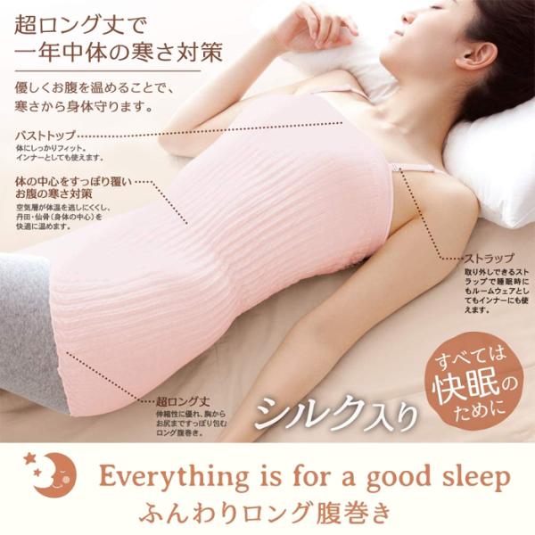 お腹、骨盤周りをすっぽり包み込み、身体の中心お腹、お尻周りを温めることで一年中寒さから身体を守り快適な眠りを。