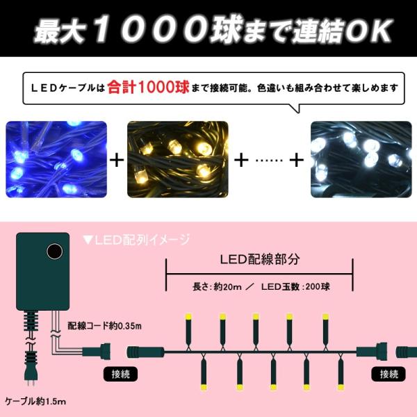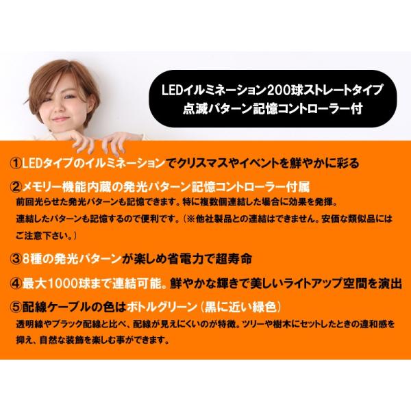 ■商品内容:LEDイルミネーション200球ストレートタイプメモリー機能内蔵コントローラー付