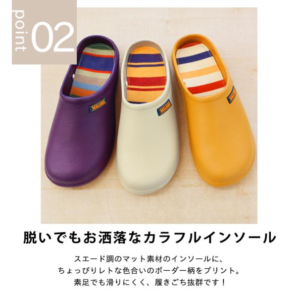 レトロカラフルなインソールがかわいい♪軽くて耐久性に優れたサボサンダル!