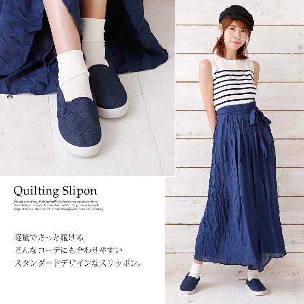履き口ふんわり♪シンプルなキルティングスリッポン
