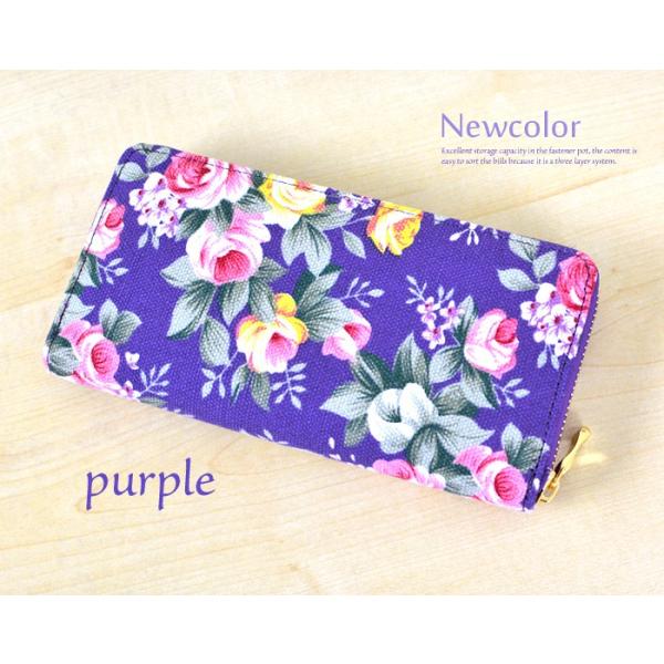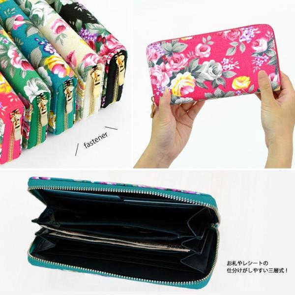 デザイン&実用性◎のラウンド式の、大人気フラワーデザインを用いたキャンバス地調長財布!