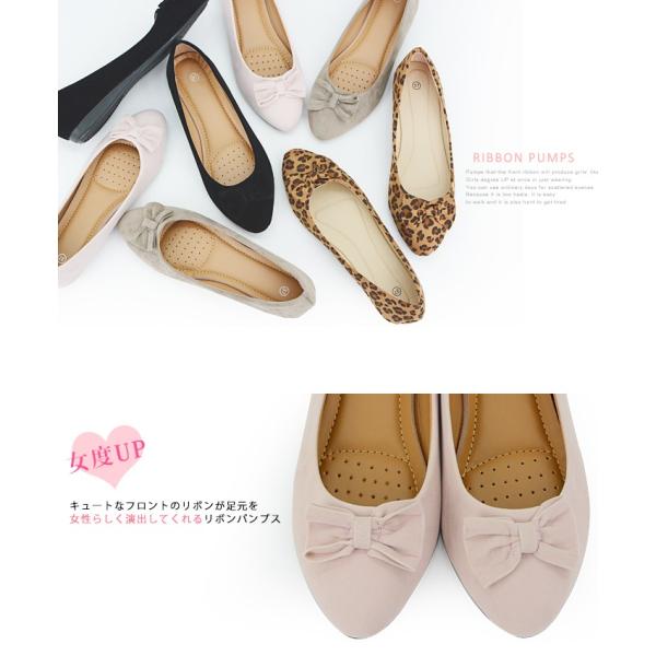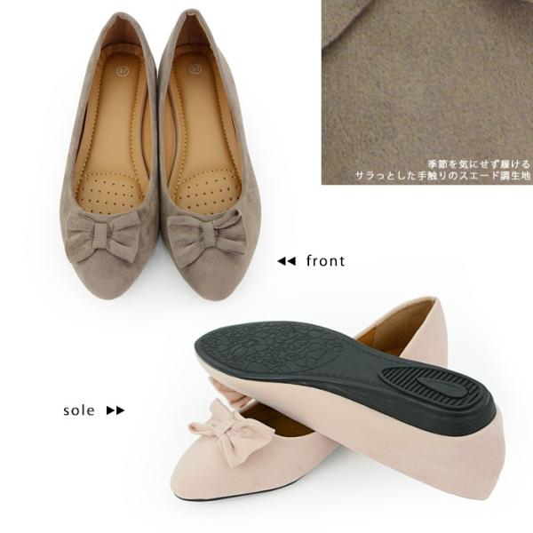 走れる スエード リボンモチーフ バレエ シューズ パンプス リボン ポインテッドトゥ フラットシューズ かわいい カワイイ