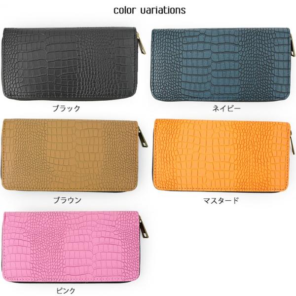 財布 長財布 サイフ レディース メンズ クロコ 型押し ラウンドファスナー Lulu&berry ラウンド クロコ型押し かっこいい クール ファスナー カード 小銭入れ プチプラ シンプル デザイン さいふ 黒 ピンク ブラウン ネイビー 軽い 多収納