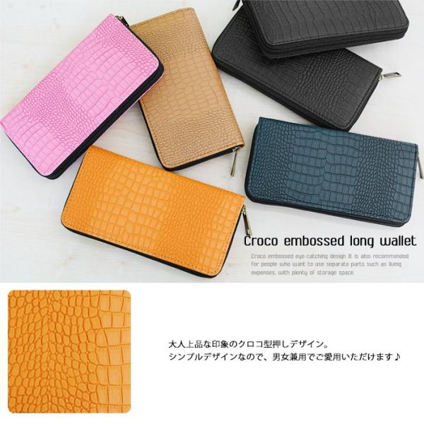 長財布 レディース メンズ クロコ 型押し ラウンドファスナー 財布 おしゃれ 無地 シンプル 多収納 黒 Lulu&berry クロコ型押し 長財布 ar-KUROm 送料200