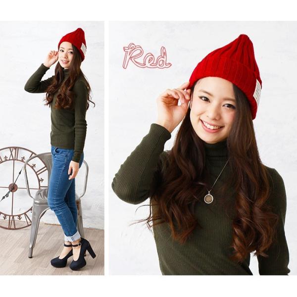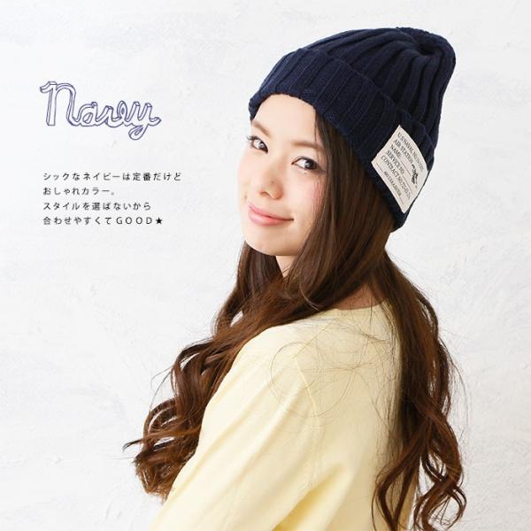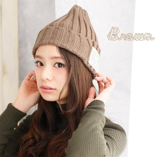 ニット 帽子 ニットキャップ リブ編み ワッペン付き 可愛い