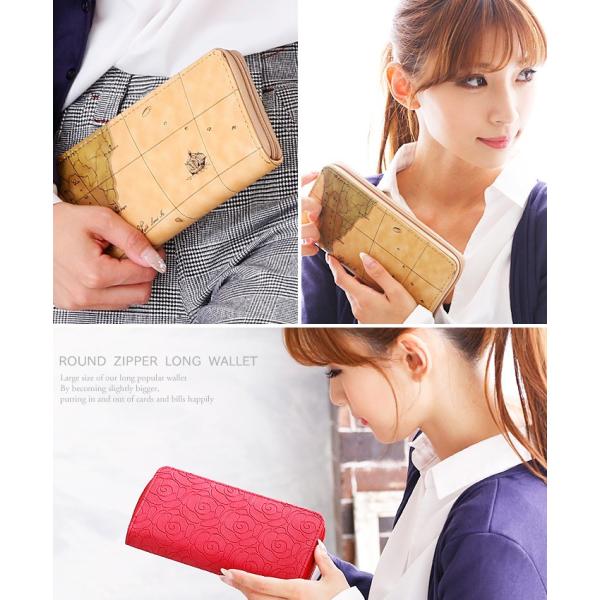 長財布 大きめ レディース メンズ ラウンドファスナー 大容量 財布 サイフ LuLu&berry 長財布 ラージサイズ カード 小銭入れ 黒 かわいい 花柄 カメリア 地図