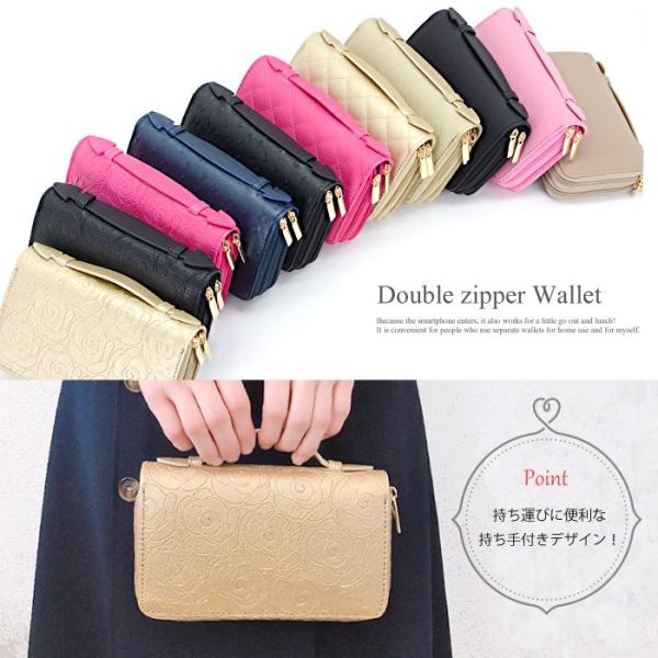 送料無料 ダブルファスナー 財布 長財布 Wファスナー 大容量 多収納 大きい ポーチ カード 通帳 小銭入れ 小物 スマホ ケース ダブルファスナー 持ち手付き ウォレット スマホポーチ ラウンド