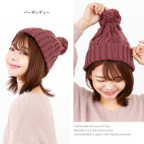 2個買って1個無料 ニット帽 ニット キャップ 帽子 レディース メンズ ポンポン ボンボン ケーブル編み くさり編み オシャレ ニット ar-PPK メール便送料無料