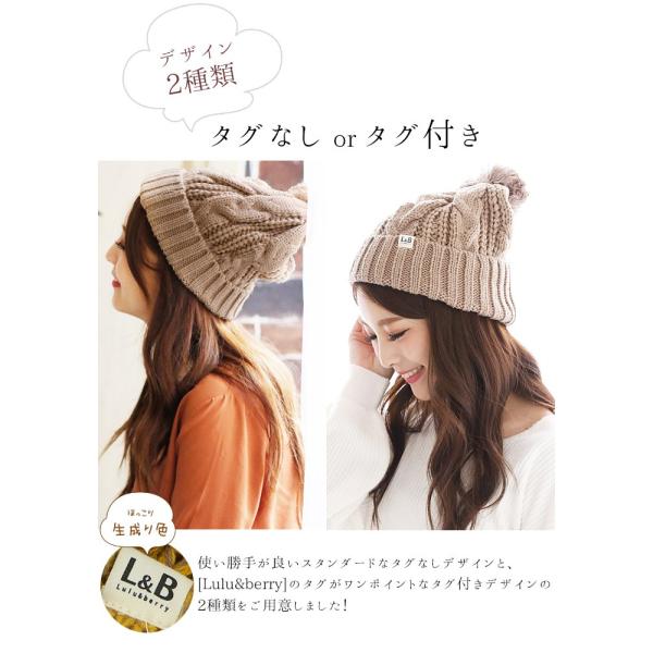 ニット帽 ボンボン ケーブル編み くさり編み ポンポン 付き レディース メンズ オシャレ ニット 帽子 ニットキャップ 秋冬 防寒 スキー スノボ 登山 男女兼用 ユニセックス ペアルック タグ