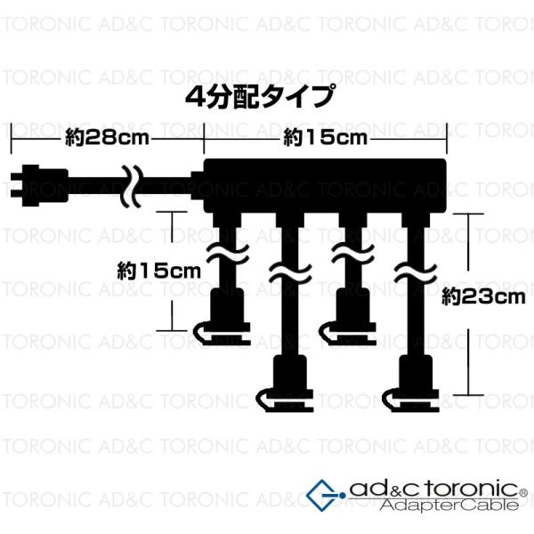[本体〜分配接続部コード長(電源プラグ含む)] 約15cm×2本、約23cm×2本