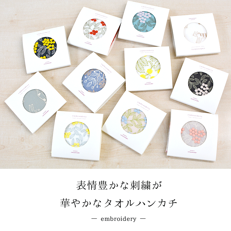 【表情豊かな刺繍が華やかなタオルハンカチ】