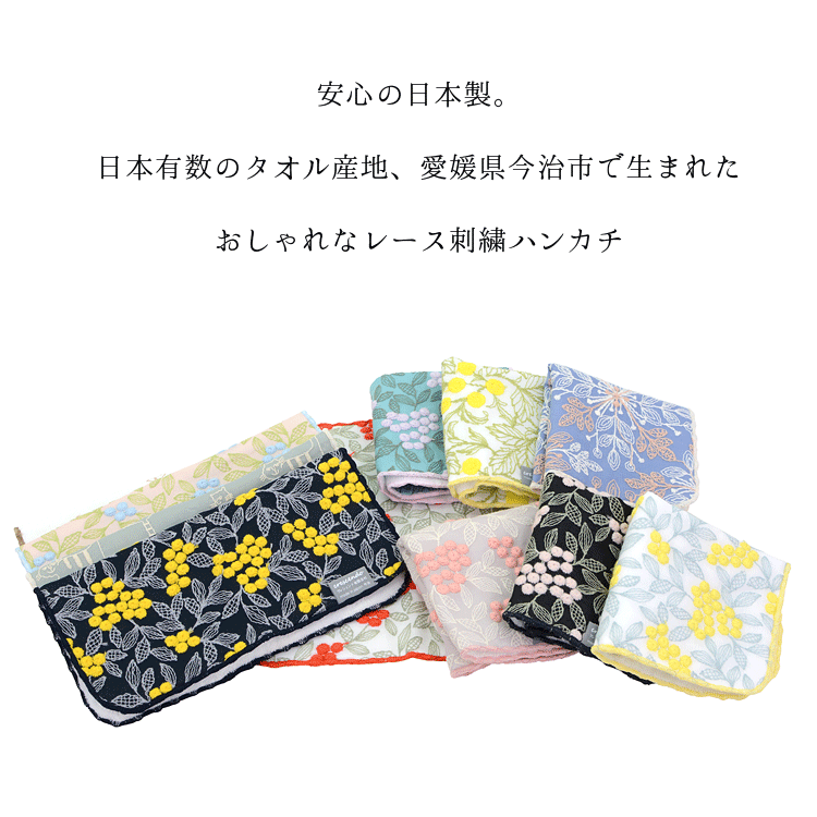 今治産 レディース ハンドタオル 刺繍 レース 21×21cm パッケージ付き タオルハンカチ 可愛い おしゃれ 花柄 綿100% ハンカチ タオル 日本製 メール便 送料200