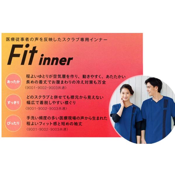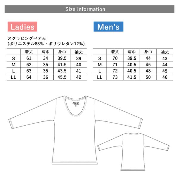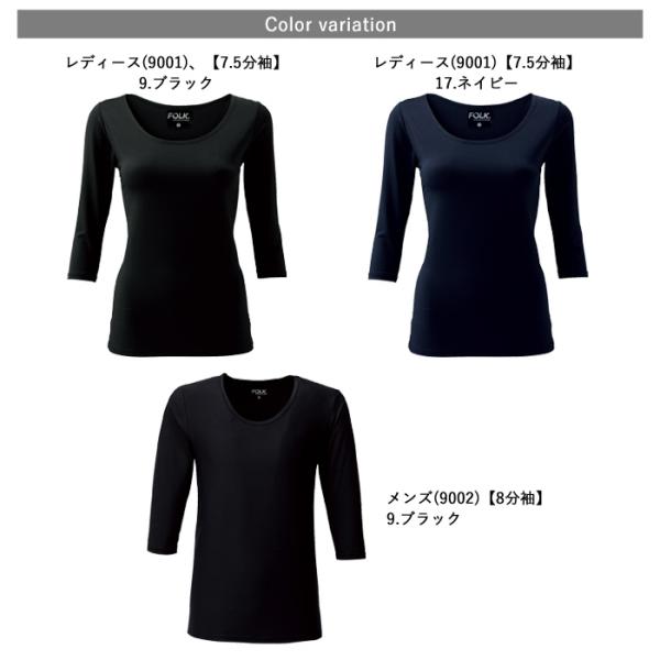 スクラブ インナー 白衣 医療 ナース 介護 看護師 医療用 FOLK 8分袖 7.5分袖 レディース メンズ 黒 インナー カットソー
