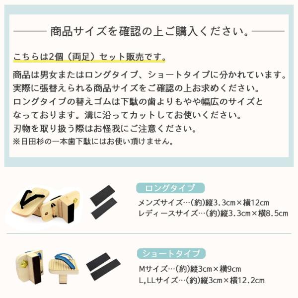 ロングタイプの替えゴムは下駄の歯よりもやや幅広のサイズとなっております。