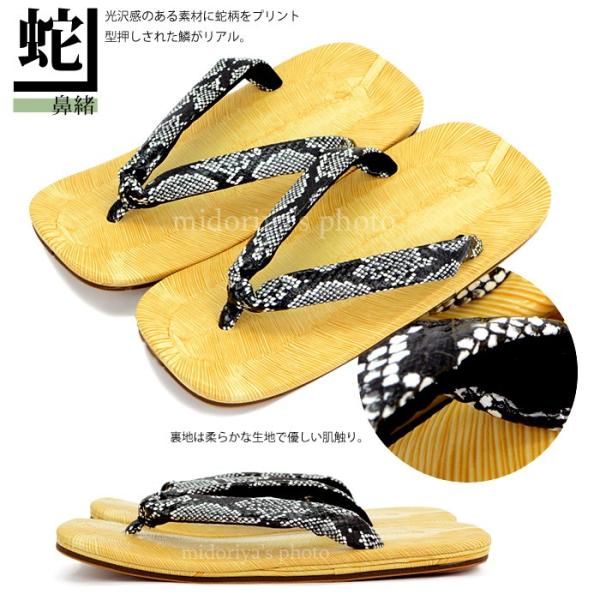 表は水が染み込まない為雨天時もご使用頂けますが、黒、印伝の鼻緒と、蛇柄の裏地に使用している鼻緒は撥水性がございませんのでご注意ください。