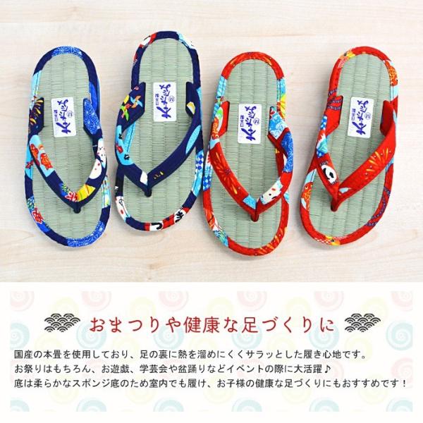送料無料 雪駄 子供 日本製 畳 草履 サンダル お祭り タタミ 子ども 男の子 女の子 キッズ カリプソ 畳サンダル 赤 青 盆踊り よさこい 可愛い 室内 屋外 部屋履き い草 イグサ 贈り物 ギフト 快適