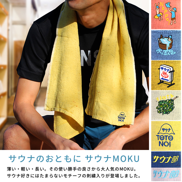 薄い・軽い・長い。その使い勝手の良さから大人気のMOKUに、サウナ好きにはたまらないモチーフの刺繍入りが登場!