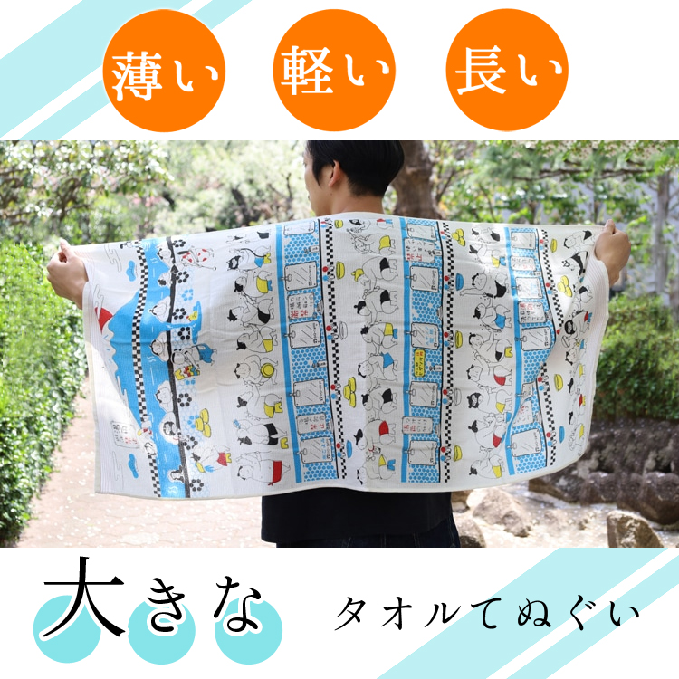 あの「うすい・かるい・ながい」三拍子揃ったタオルてぬぐいの素材をそのままに、 「うすい・かるい・でかい」大きなタオルてぬぐいになりました!