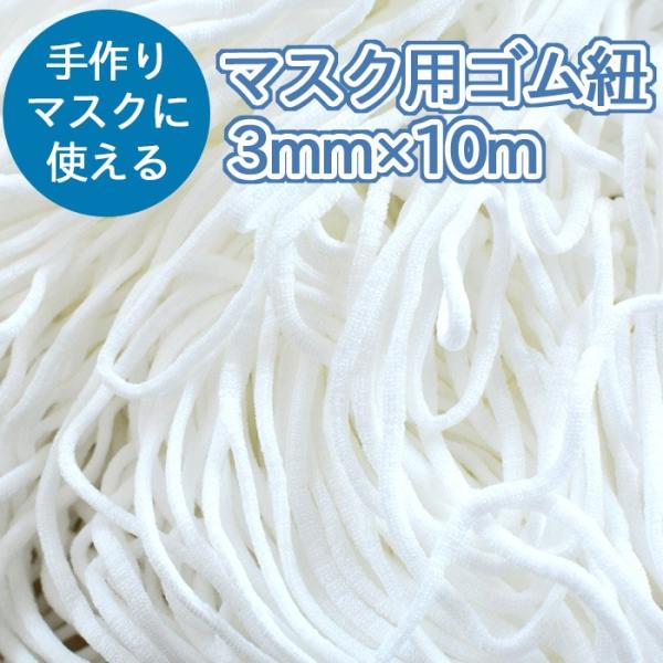 メール便 送料無料 マスクゴム マスク用ゴム紐 3mm×10M ふんわりやわらかタイプ マスク ひも 3ミリ 10M 痛くない マスク 手作り 白 マスク紐 ゴム紐 ホワイト 手作りマスク ハンドメイド 丸ゴム 代用品 趣味 手芸