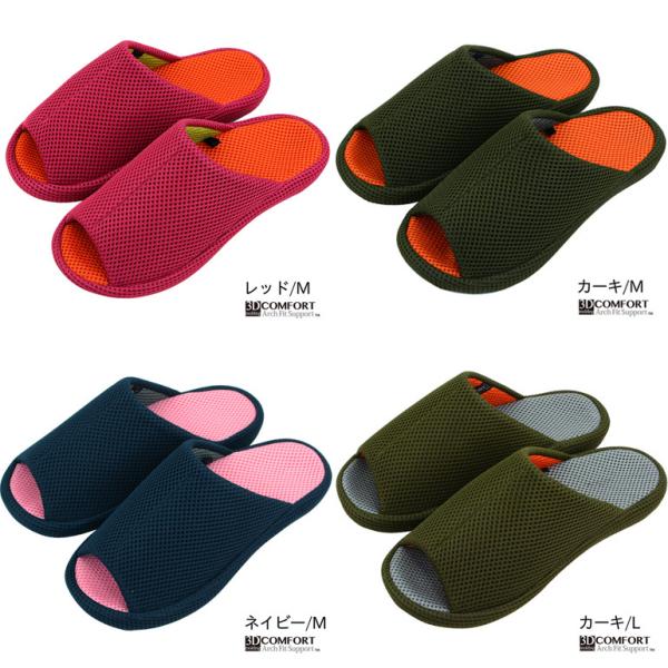 3D COMFORT スリッパ スポーツテイスト オールメッシュ 3Dコンフォート 足にぴったりfit おしゃれ ルームシューズ 健康スリッパ 健康サンダル オールシーズン 快適 メッシュ素材 スリッパ ルームシューズ オフィス 室内 歩行 姿勢 サポート ブラック ネイビー カーキ レッド 22.5cm 25.5cm 26.5cm 27.5cm