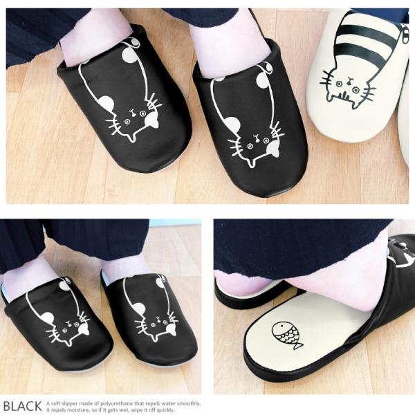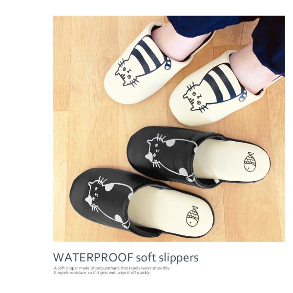 スリッパ ネコ ねこ柄 室内スリッパ トイレ キッチン 洗面所 はっ水 拭ける おしゃれ トイレスリッパ フェイクレザー ふきふきネコスリッパ お手洗い 便所 レストルーム レディース 男女兼用 滑り止め加工 履きやすい かわいい 前とじ