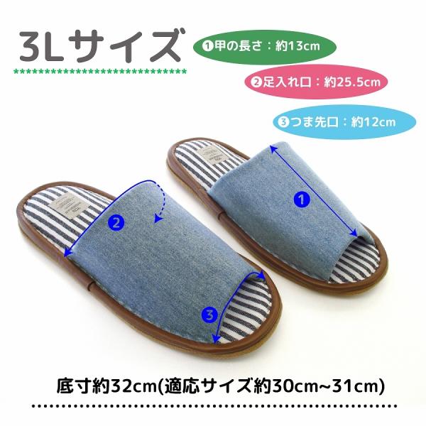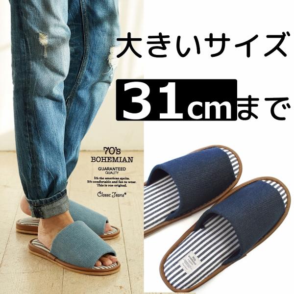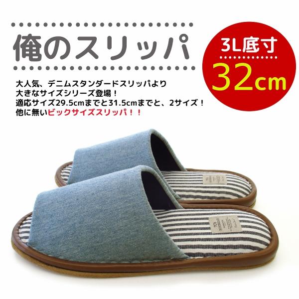 スリッパ 特大 32cm 大きいサイズ 2L 3L 俺のスリッパ おしゃれ デニム ストライプ アメカジ 超ゆったりサイズ ビッグサイズ メンズサイズ 来客用 ルームシューズ 前あき ブルー ネイビー 大きめ 28.5cm 29.5cm 30cm 31cm メンズ デニム