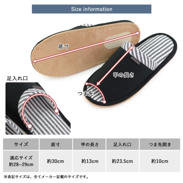 スリッパ メンズ 大きいサイズ 29センチ 大サイズ おしゃれ ストライプ ルームシューズ ルームスリッパ 滑り止め 静音設計 来客用 部屋履き 会社 職場 在宅勤務 モノトーン ブラック グレー