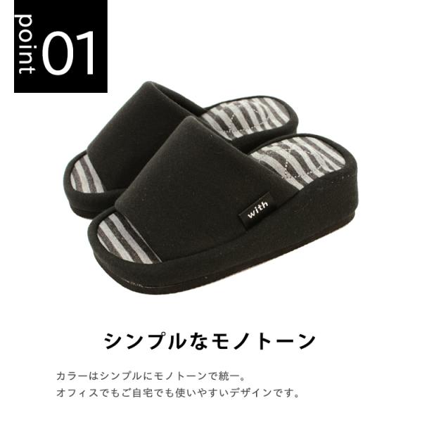 スリッパ with 美脚 厚底 足つぼ つぼ押し 指枕 マッサージボール入り つま先立ち 健康スリッパ 健康サンダル おしゃれ ボーダー ダイエットスリッパ レディース 女性 在宅勤務 会社 職場 ウィズ ルームスリッパ 前あき スリッパ ヒール 4cm 足つぼ マッサージ 足裏 足ツボ 厚底 ブラック グレー