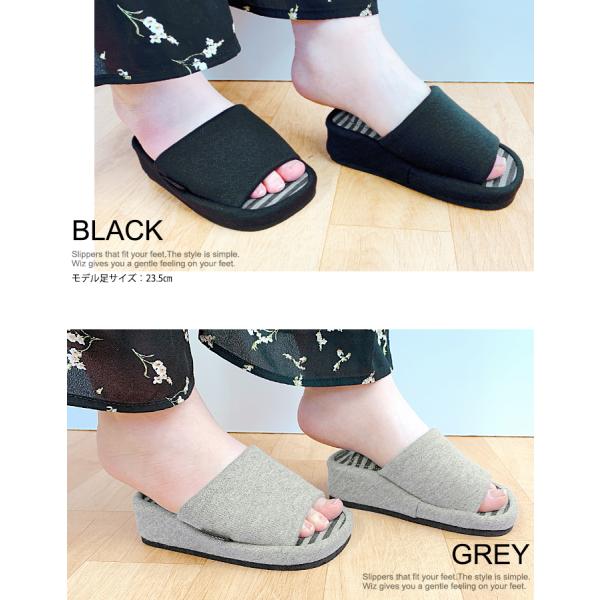 スリッパ ヒール 4cm マッサージ 足裏 足ツボ 厚底 ブラック