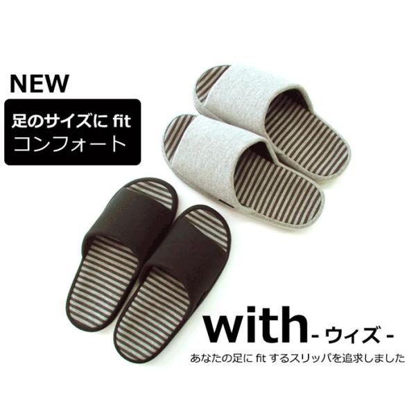 スリッパ 足にぴったりfit おしゃれ ボーダー with コンフォートスリッパ レディース メンズ 部屋履き 会社 職場 在宅勤務 来客用 ウィズ ルームシューズ ルームスリッパ お洒落 前あき スリッパ オフィス履き モノトーン モノクロ ブラック グレー シンプル