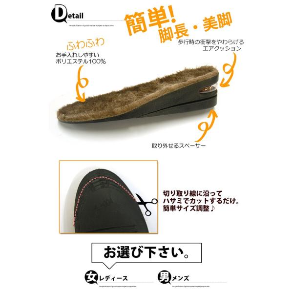 送料無料 インソール インヒール メンズ レディース かかと 中敷き +5cm ふわふわ あったか シークレット エアインソール 上げ底 冬 秋 ボア ファー ヒール ブーツ 足元 エアーインソール 革靴 ペタンコ靴 ムートンブーツ ムートン