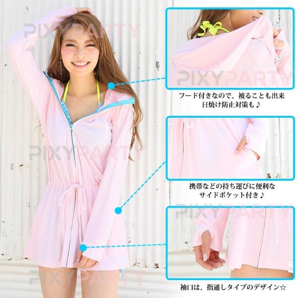 ラッシュガード レディース 長袖 ジップパーカー おしゃれ 紫外線 UVカット 日焼け対策 無地 ネオン ロングラッシュガード rs-swim-106 メール便送料無料