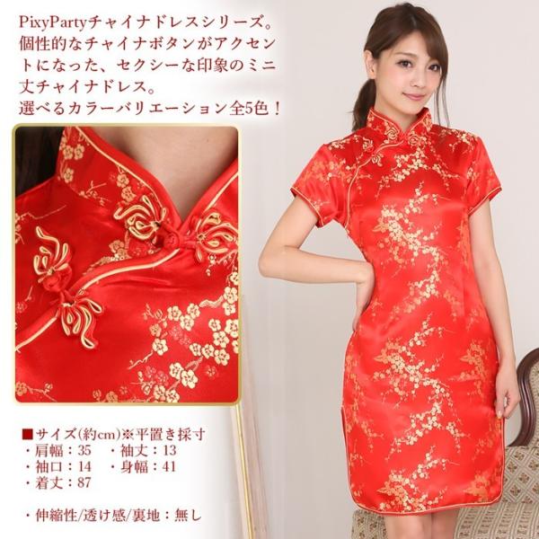 チャイナ コスプレ チャイナドレス 衣装 コスチューム ハロウィン PixyParty チャイナ服 かわいい 大きいサイズ ミニ rs-ume-001m メール便送料無料 S M L LL 3L