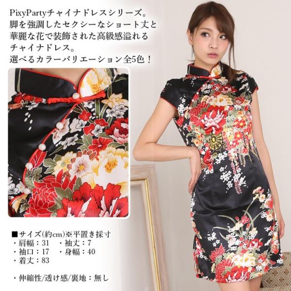 チャイナ ドレス コスプレ コスチューム 衣装 レディース セクシー PixyParty サテン チャイナ服 花柄 ショート ミニ チャイナドレス かわいい 華やか イベント パーティ