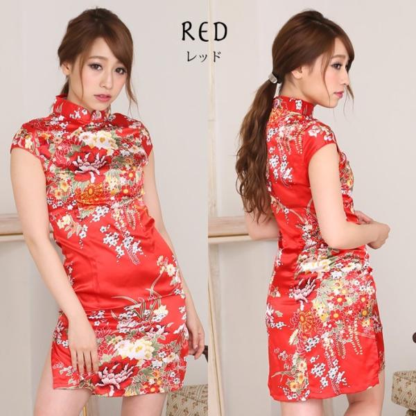 チャイナ コスプレ チャイナドレス 衣装 コスチューム ハロウィン セクシー かわいい サテン調 PixyParty ミニ 大きい rs-ume-003m メール便送料無料 M L LL 3L