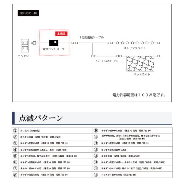 プロ施工仕様 ジョイントタイプ専用 16パターン点灯 ACジョイント メモリー機能付き イルミネーション 電源コントローラー 黒配線 sb-6185-342 あすつく