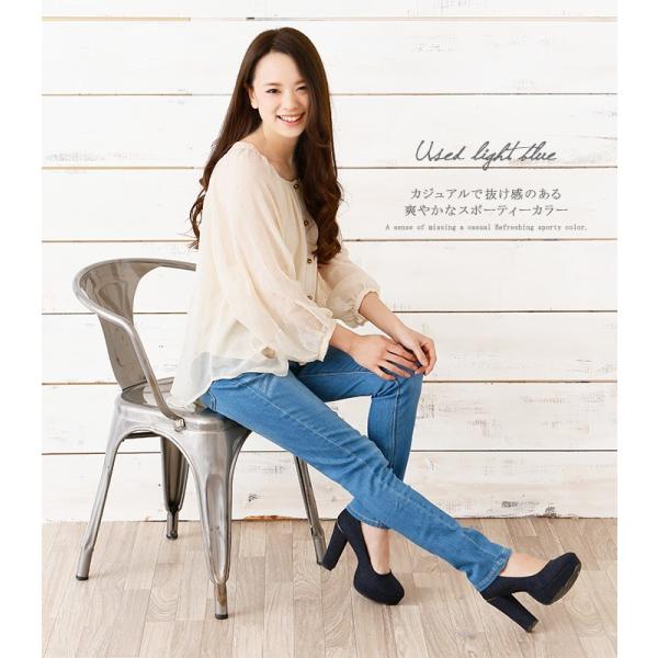 春 夏 デニム スキニー ボトムス パンツ ズボン 伸びる フィット ストレッチデニム ストレッチパンツ 美脚 脚細 小尻 シンプル 大人 おしゃれ 冷感 S M LL 小さいサイズ 大きいサイズ ブルー ライトブルー