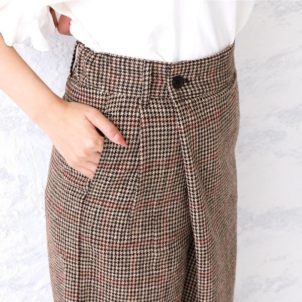 50%OFFクーポン対象 ワイドパンツ タックパンツ レディース グレンチェック ハイウエスト ロングパンツ ラップパンツ st-n-4488m 宅配B 送料無料 あすつく