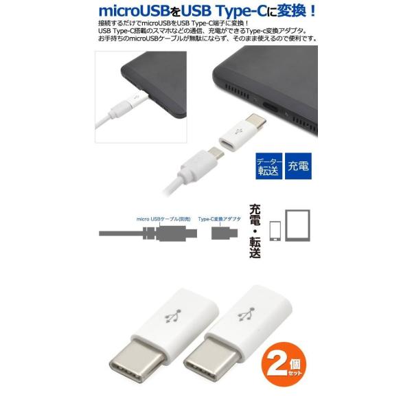 2個セット micro USB Type-C 変換アダプタ USB Type-C to microUSB 充電器 充電 データ転送 アダプター スマホ データー通信 充電