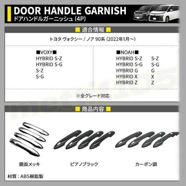 ヴォクシー90系 ノア90系 パーツ ドアハンドルガーニッシュ 4P 選べる3カラー カスタムパーツ ドレスアップ NOAH VOXY