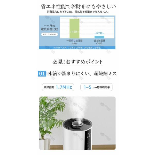 ※室内湿度をコントロール:設定した湿度超えると、加湿を自動停止、加湿過ぎ防止、設定した湿度復帰すると、加湿を自動起動します