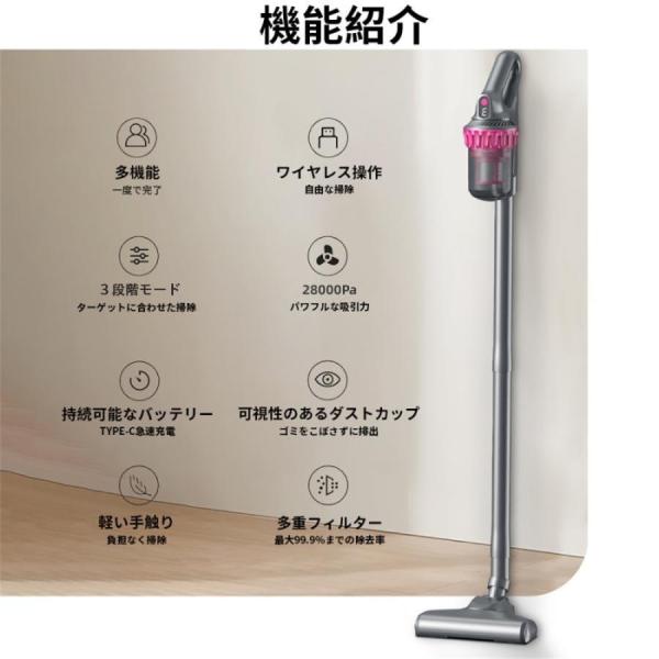 掃除機 コードレス 充電式 ダニ駆除機 紫外線殺菌 強力吸引 28000pa 4WAY サイクロン式 軽量 静音 小型 スティック型 ハンディクリーナー コンパクト 2024最新