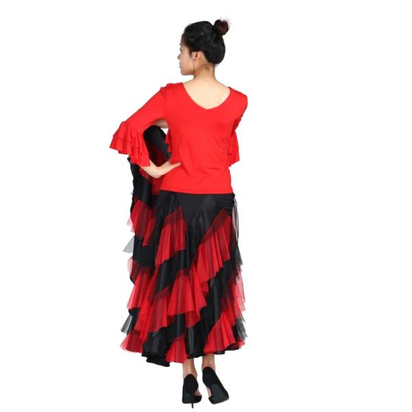 ランキング1位 フラメンコ衣装 mikadress トップス フラメンコ 衣装 タンゴ ポールダンス レッスン着 ストレッチ フィットネス レディース ジュニア フリル 黒 赤 白 紫 mikadress