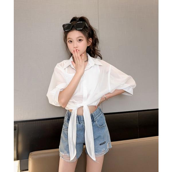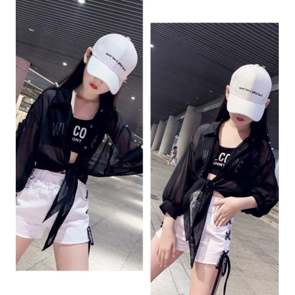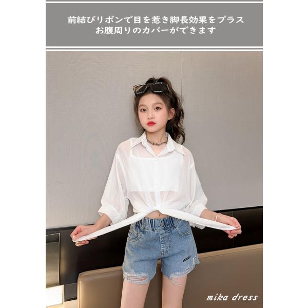 キッズダンス キッズ ダンス 衣装 女の子 前結び シャツ ボレロ シースルー シアー へそ出し ショート トップス 襟付き おしゃれ 韓国 レッスン着 cy10n-pa