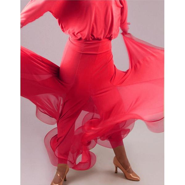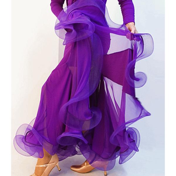 ダンス衣装 スカート 鮮やかボリュームフレア ロングスカート 広がる フラメンコ ペチコート パニエ シフォン マキシ丈 社交ダンス ミカドレス cy408-1