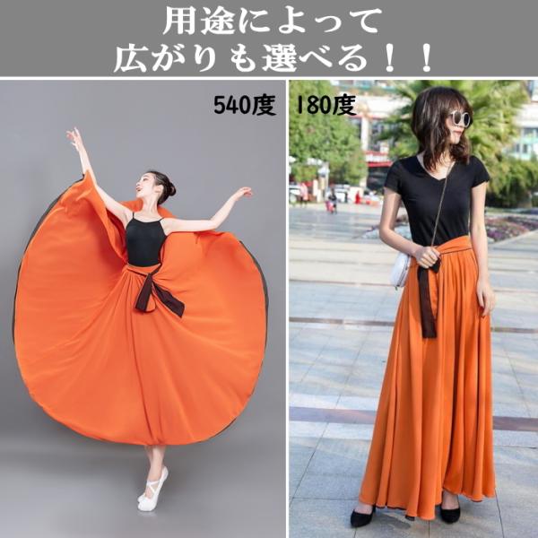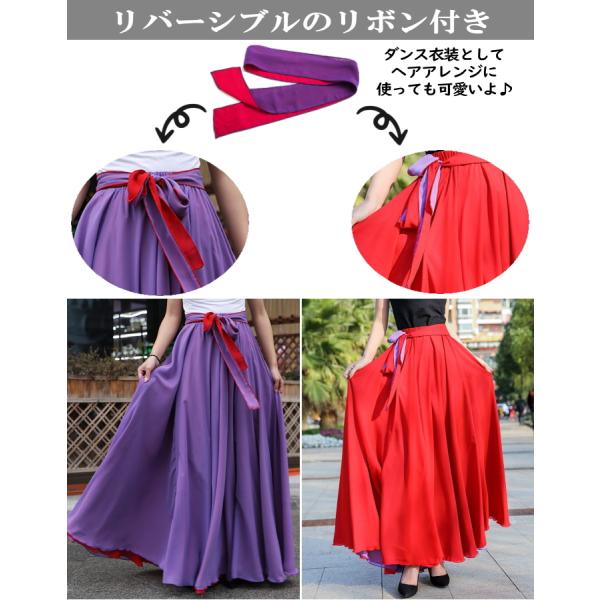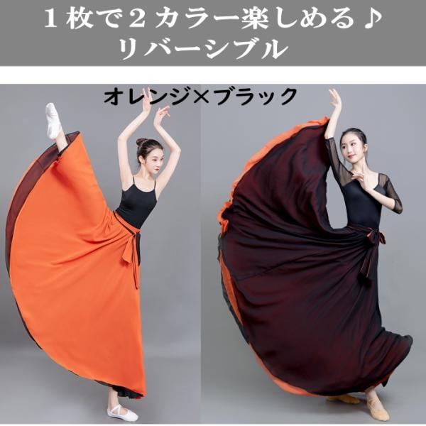 スカート ダンス衣装 ロングスカート リバーシブル 540度 全円 シフォン マキシ丈 社交ダンス ヒップホップ コーラス フラメンコ ミカドレス cy238n-2