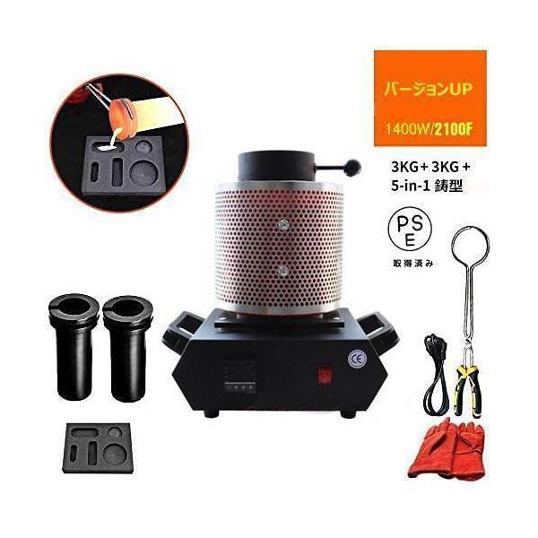 電気溶解炉 PIDデジタル温度制御溶解炉 3kg+3KG 1400W 1100℃ 貴金属、金、銀、銅、アルミニウム鋳造対応(金溶解炉) 焼却炉 家庭用