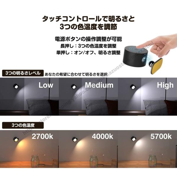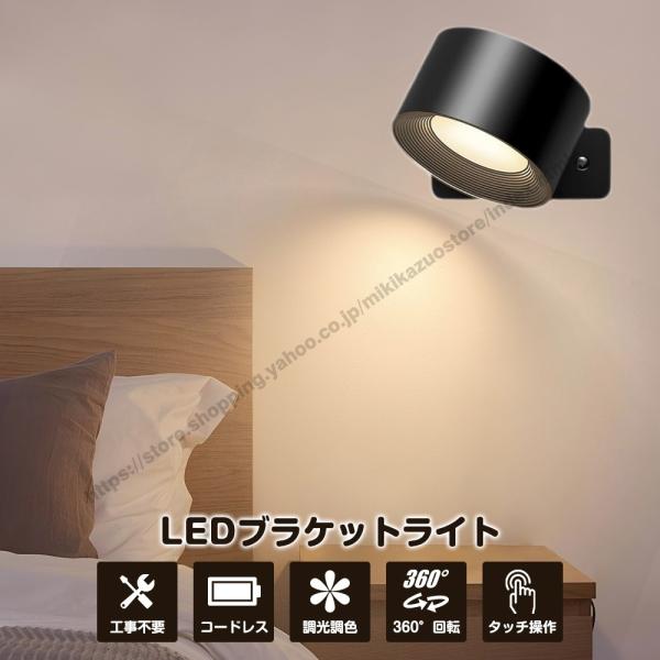 ブラケットライト LED磁石壁掛けライト 照明 360度回転 タッチ操作 引掛けシーリング 充電式 工事不要 コードレス 間接照明 調光調色 リモコン付き 玄関 部屋